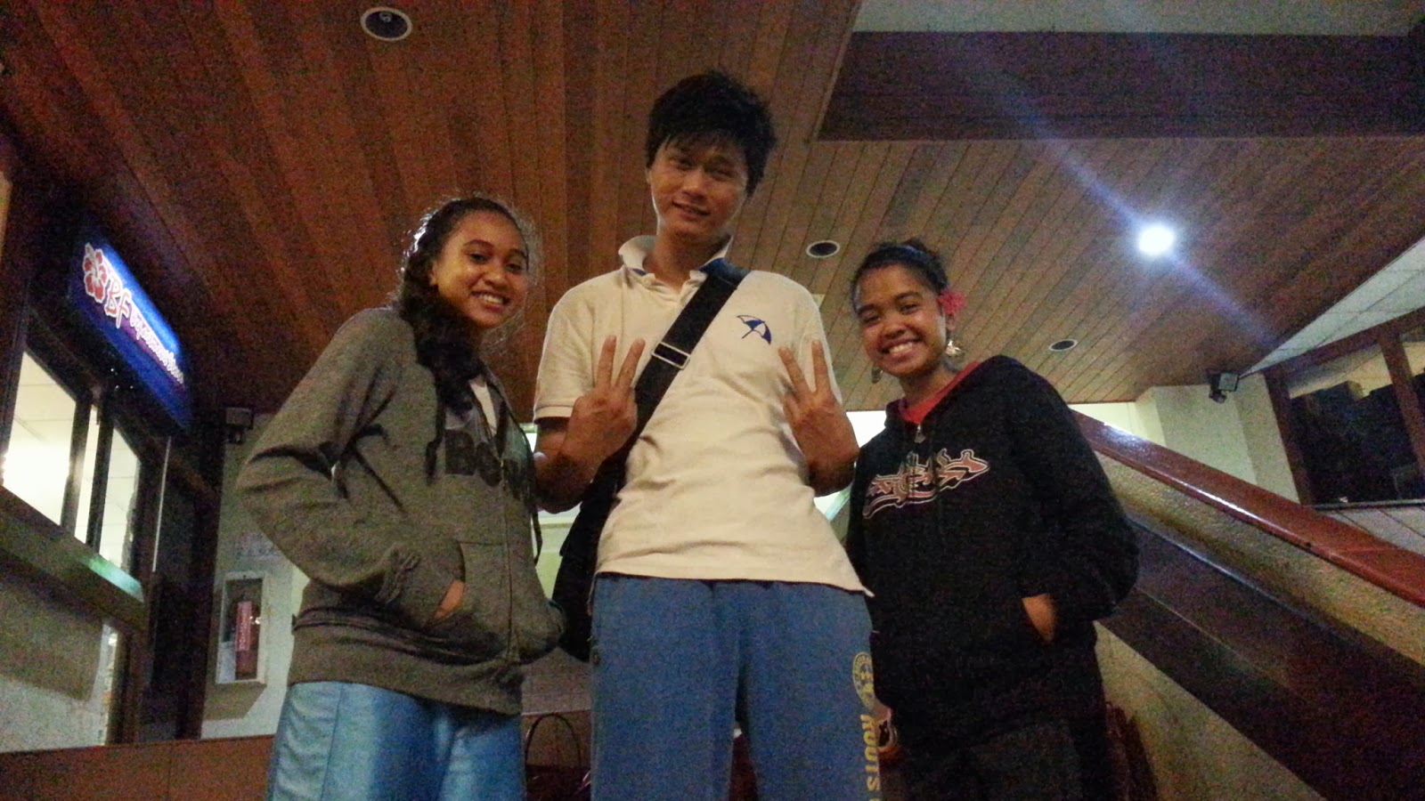 我跟巨砲坐在外面階梯,